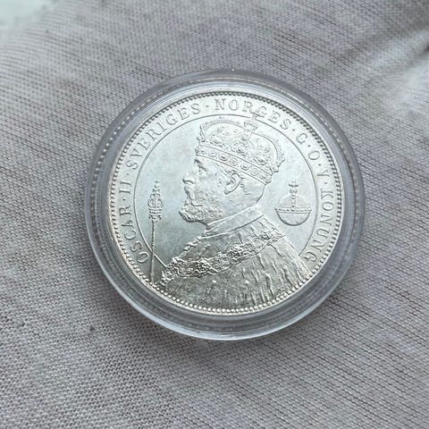 Gullmynten veier 6,45 gram 900 gull (= 5,8 gram 999 gull).