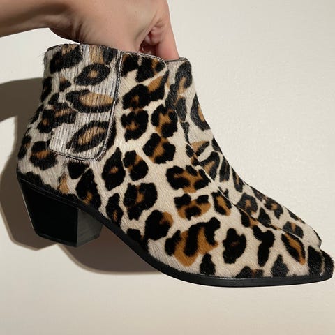 Med dyreprint og metallisk hel, stretch. Ny pris rundt 3000