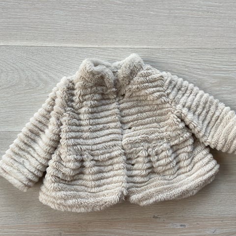 Nydelig pelskåpe hvit, str 12-18 mnd.