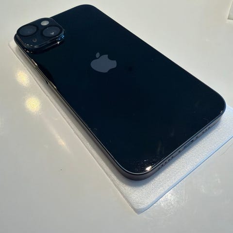 Apple iPhone 14 mobiltelefon med 128 GB lagringsplass i fargen lilla. Mobiltelefonen er i strøken tilstand, uten bruksmerker.