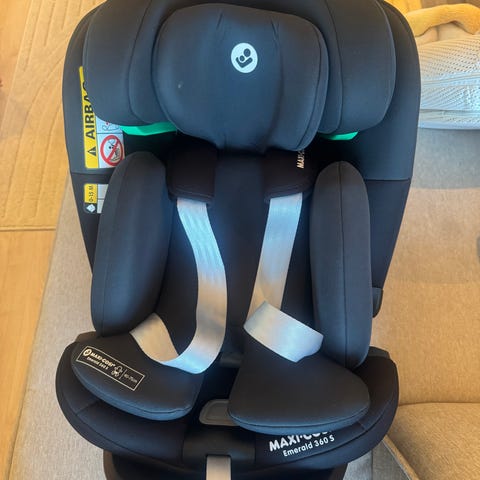 Maxi-Cosi Pearl 360 med base. Er i god stand og har nyvasket trekk. Noen merker som er litt slitt bort, men ikke skader (utover småskrammer).