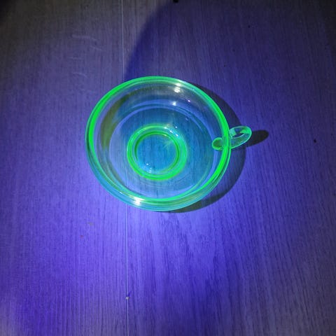 6 stk Art Deco Uranium Glass Underskåler – 17,5 cm