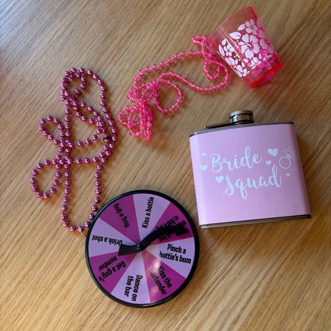 Ukjent merke utdrikningslag pakke med rosa tilbehør. Settet inneholder blant annet