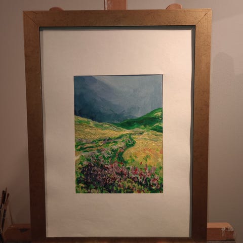 Større lerret med kraftig blindramme, samt ett mindre lerret som vist på bildene.