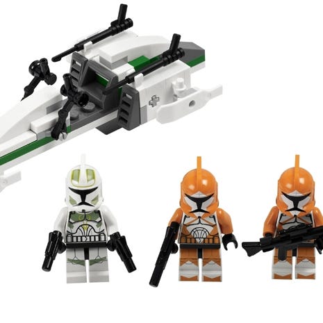 Lego Star Wars 7655 Clone Troopers Battle Pack fra 2007. Komplett med instruksjoner. Fine figurer uten sprekker eller merker, instruksjonen er ok. Litt brett, men er hel og uten skader.