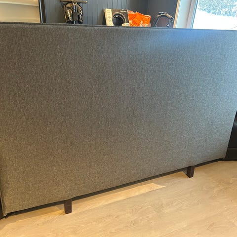 Jysk sengegavl i grått tekstiltrekk. Nøytral og enkel utførelse som passer til ulike typer senger og soveromsinnredning. Gavlen plasseres bak sengen for å gi en avgrensning mot veggen og kan gi en mer behagelig støtte når man sitter i sengen. Egner seg til bruk på soverom i hjem, gjesterom eller hybel.