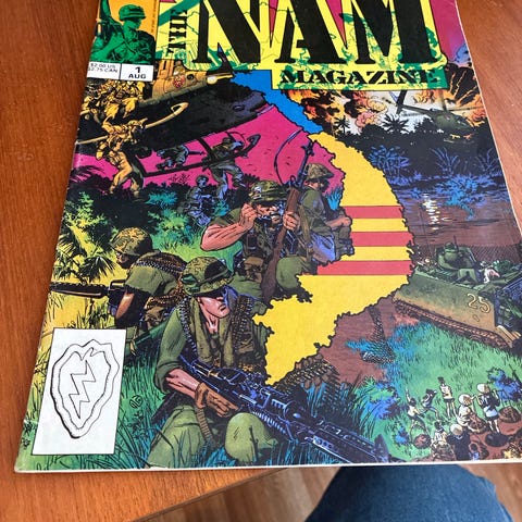 Jacques Tardi Blomsten på geværet tegneseriehefte. Heftet er på norsk og har farget omslag. Inneholder tegneserier med krigstematikk, illustrert og skrevet av Jacques Tardi. Egner seg for samlere av tegneserier og lesere som er interessert i krigsrelaterte historier i tegneserieformat.