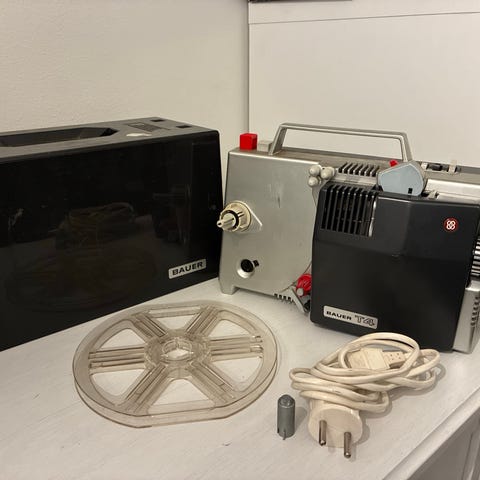 Apparatet er merket som «Disco Movie Editor» og «Dual-8 Model L-120». Det er beregnet for redigering og visning av 8 mm smalfilm (Dual-8). Enheten har innebygd skjerm, filmtransport og tilkoblingskabel for strøm (220 volt). På baksiden er det oppgitt at lampen er 6 volt / 10 watt.