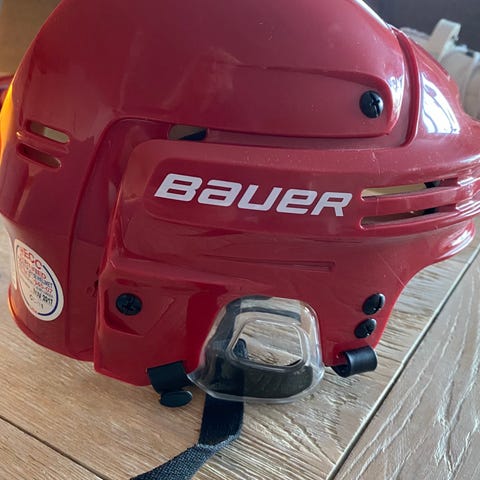 Bauer Reakt 55 ishockeyhjelm med gitter i svart farge. Hjelmen har justerbar størrelse 54,5–59 cm (6 7/8–7 3/8) og leveres med avtakbart metallgitter for ansiktsbeskyttelse. Innvendig polstring med støtdempende skum og ventilasjonsåpninger for lufting. Egnet til bruk i ishockey og annen skøytesport der hode- og ansiktsbeskyttelse er påkrevd.