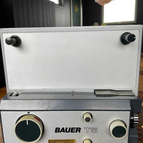 Bauer T4 filmprojektor i metall og plast. Modellen er beregnet for visning av smalfilm og har bærehåndtak på toppen for enkel flytting. På siden sitter objektiv med fokusring, samt ventilasjonsriller for kjøling. Baksiden har strømtilkobling, og fronten har filmspolefester og betjeningsknapper. Egner seg til avspilling av analoge filmruller i hjemmemiljø eller mindre visningsrom. Selges med strømkabel, og ekstra 8mm spole. obs! Ikke testet. Selges som delemaskin/samlerobjekt.