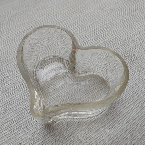 Hvit kopp med tilhørende skål . Koppen har et enkelt hjerte-motiv på utsiden.