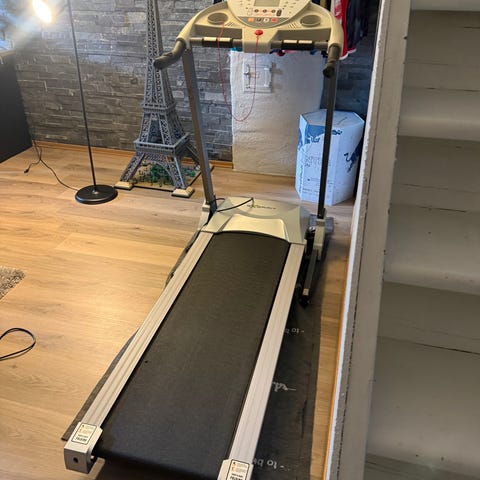 Nå demontert til to deler, løpebåndet er veldig tungt.