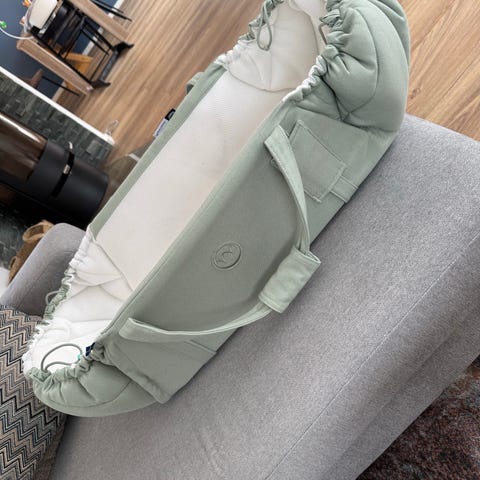 Kan brukes som liggeplass for baby i sofa, seng, barnevogn eller på gulv etter behov og innenfor produsentens retningslinjer for bruk og sikkerhet.