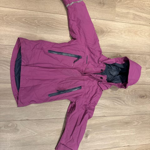 Didriksons vinterjakke for barn, størrelse 110.. Modellen er tilpasset jente. Jakken har hette og hel glidelås foran. Innside med lys kontrastfarge og merkelapper fra Didriksons. Egnet som ytterjakke for barn i størrelse 110.