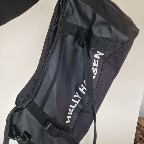 Flott stor 70l bag fra Helly Hansen.Tåler mye vannFin stand/lite brukt.men et lite hull/brennmerke ol..Vises nesten ikke(størrelse med spikerpistol)er limt/ok kan settes en lapp over.Men en flott stor/praktisk bag.bud