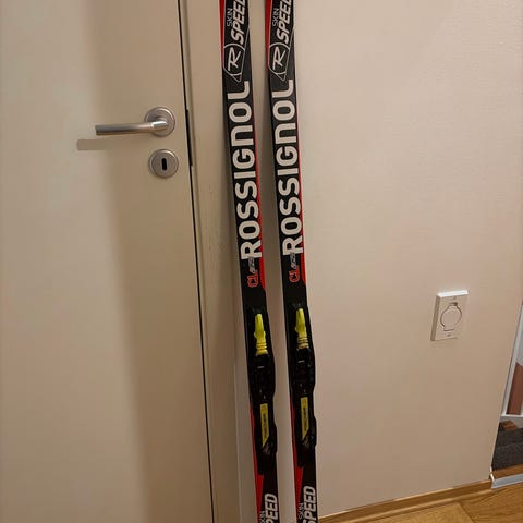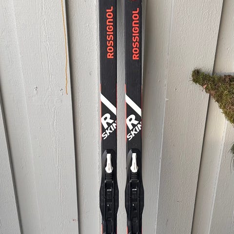 Rossignol R-Skin langrennski i svart og blå farge. Skiene har integrert fellesone under midtpartiet for feste. Passer til klassisk langrenn.