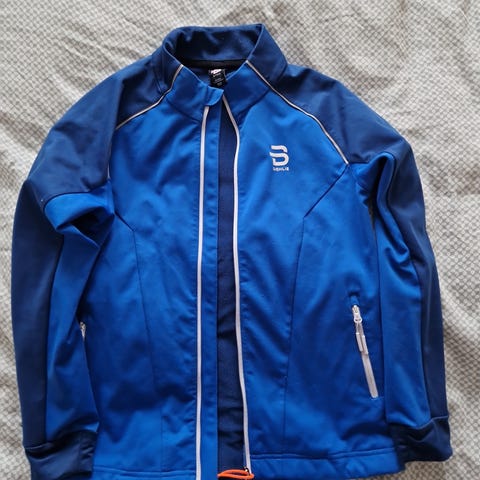 Jakken har hel glidelås foran og to glidelåslommer i siden. Den er laget i et lett og funksjonelt materiale, med lange ermer og høy krage. Fargekombinasjon i ulike blåtoner med lyse kontrastdetaljer. Passer til barn/ungdom til bruk for eksempel til langrenn, løping eller annen utendørs aktivitet.