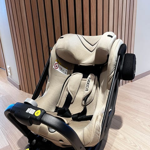 Barnesetet er beregnet for barn i størrelse 25. Det har integrert internsele og hodestøtte. Setet monteres bakovervendt i bilen. Trekket er i tekstilmateriale og kommer i en mørk farge.