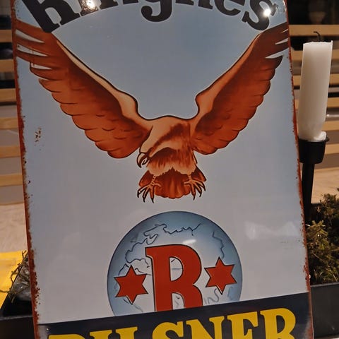 Ringnes bryggeri pilsner Emaljeskilt laget av Halvorsen og lund.oslo
