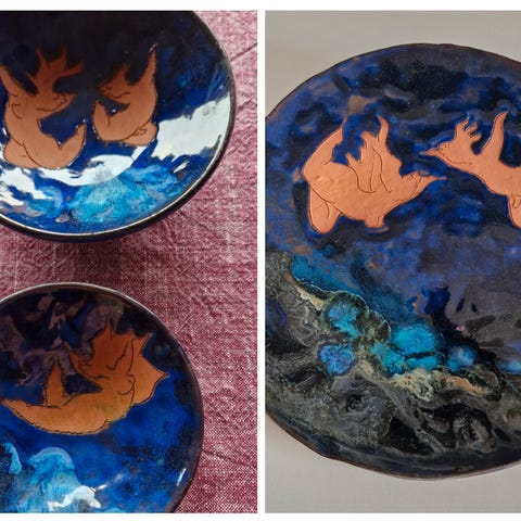 NINA NESJE (1963-2023) keramikk fat og skål, motiv dans