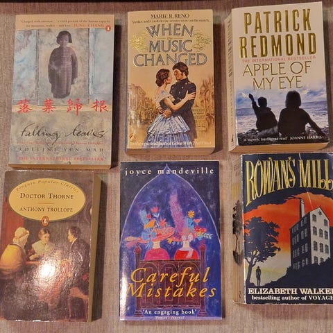 To bøker fra serien «The Tudors» samt romantiske historiske romaner av forfatteren Brenda Joyce og Stephanie Laurens.
