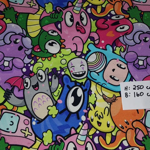 Fargerikt, stripet jerseystoff selges. Vasket 1 gang - ferdig krympet.
