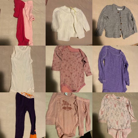 De fleste av plaggene er pent brukte. Har skrevet på bilde på de plaggene det er skader på, som kun er et par plagg. Om du ønsker å kun kjøpe deler av pakken er det fullt mulig. Bare å ta kontakt.