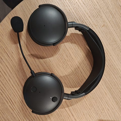 Medfølger USB-C kabel, USB dongle og avtagbar mikrofon.
