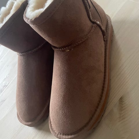 Myke og varme UGGs i klassisk brun modell. Komfortable boots som passer perfekt til høst og vinter, og enkle å style til hverdagsbruk. Materialet inni er muligens en blanding av syntetisk og ull, så ikke 100% ull fôret inni, men holder fortsatt varmen veldig godt! 🔥