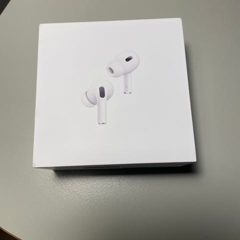 Selger AirPods Pro 2 med Lightning-ladeetui. Settet er nullstilt, profesjonelt renset og testet; klart for ny eier. Alt fungerer som det skal med lyd, støydemping, mikrofon og lading.