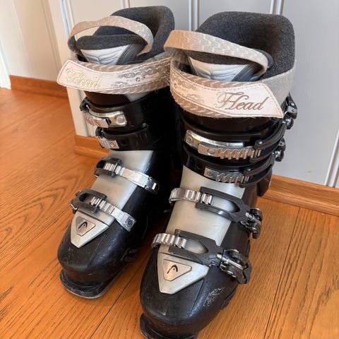 Nordica Oxygene alpinstøvler i svart og hvit plastskall med grått innerfôr. Støvlene har fire justerbare spenner i metall og plast, samt powerstrap øverst for bedre tilpasning rundt leggen.
