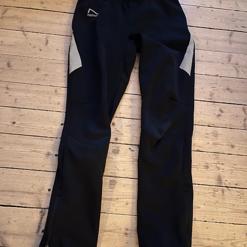 Bukse: mørk blå. Strammemulighet ved ankelen.