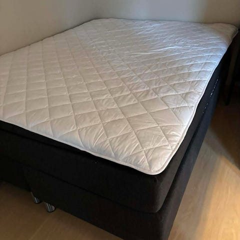 Jysk seng i grått tekstiltrekk selges grunnet flytting. Kjøpt for 2,5 år siden. Brukt beskyttelsesmadrass på seng hele tiden. I god stand. Må hentes.