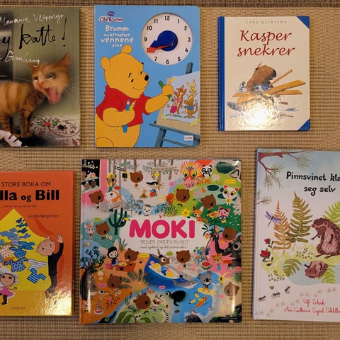 Pakke med 11 barnebøker på norsk, hovedsakelig bildebøker. Selges samlet.