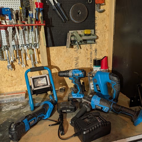 Eldre drill med lader ig 2 batterier.