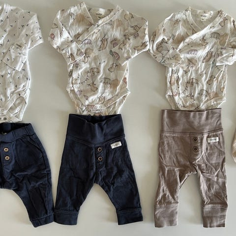 Liten klespakke med Newbie plagg. Minst 1 plagg er ubrukt, men mulig det er flere plagg også. Ellers er plaggene brukt få ganger av 1 barn i kort tid. Alltid vasket med parfymefritt vaskemiddel. Dyr-og røykfritt hjem.