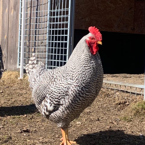 Selger rugeegg av hvite og brune Lohman som går sammen med Cream Legbar hane.Pakking/sending 270kr.