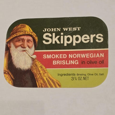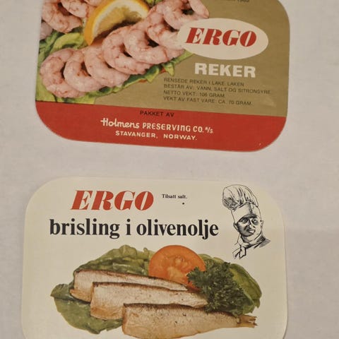 Vakker håndtegnet illustrasjon fra norsk hermetikindustris glanstid.