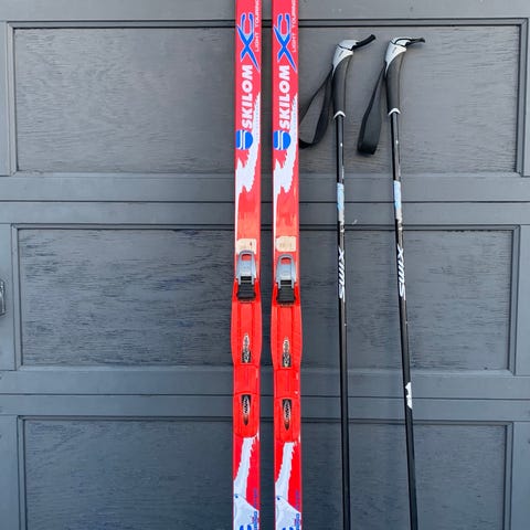 Settet inkluderer Swix langrennsstaver på 130 cm med korkhåndtak og håndremmer. Staver og ski passer til bruk i preparerte skiløyper til trening og turbruk. Stødige ski, lite brukt. Selges fordi jeg har kjøpt nye og lenger ski på salg.