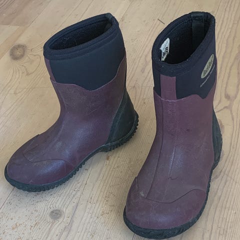 Viking barnestøvler i størrelse 25 for unisex barn. Støvlene er i en lilla farge med stripet mønster og grov såle som gir godt grep. Egnet som hverdagssko i vått vær og til lek ute i barnehage eller skolegård. Laget for å tåle fuktige forhold og enkel rengjøring etter bruk ute.