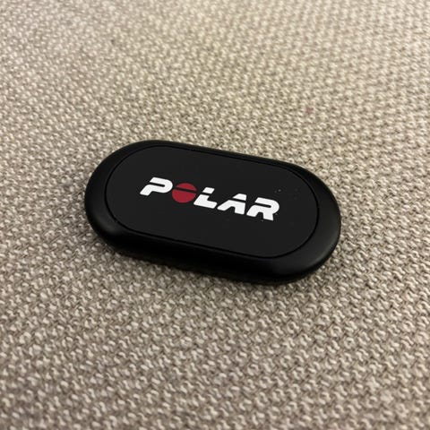 Sensor og belte. Reima bør vaskes og batteriet byttes.