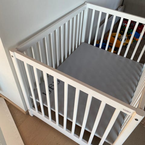 Pent brukt grind med tilhørende teppeunderlag. Pent brukt. Veggfeste medfølger ikke.