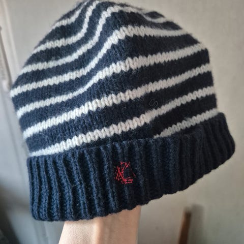 Nydelig lue fra det italienske soortsmerket Conte of Florence i 50% ull, ferskenfarget med grå dusk og sølvgrå logo/emblem med «diamanter» foran. Kvalitetslue i god stand.