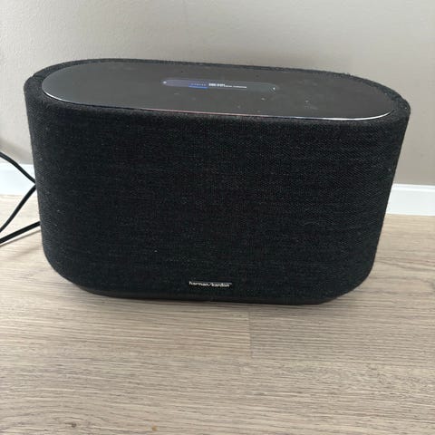 Harman Kardon trådløs høyttaler i rund utforming med svart front. Høyttaleren har et kompakt design som egner seg for bruk i stue, kontor eller soverom. Kan brukes til avspilling av musikk, podkaster og annet lydinnhold fra kompatible enheter via trådløs tilkobling eller eventuelle tilgjengelige tilkoblingsporter, avhengig av modell.