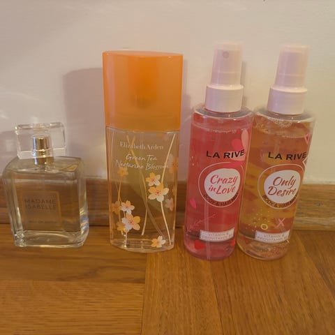 To ubrukte body mist, en fra Essence og en fra "I love". Begge kjøpt hos Lyko og kun luktet på.