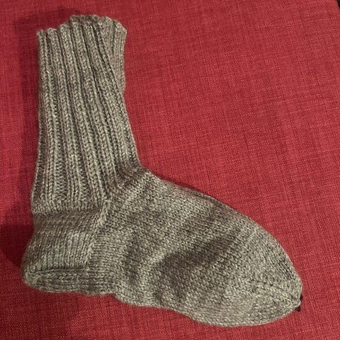 Jeg har helt seriøst null overskudd til å reparere de her. Det er bare det ene hullet, og resten av sokkeparet er egentlig helt i orden.