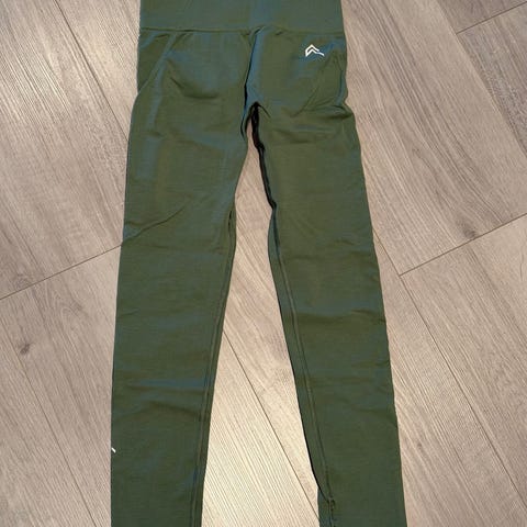 Treningsleggings for dame i størrelse M. Leggingsen har høy midje og rynkedetalj bak. Fargen er grønn. Egnet til fitness og annen trening. Selges da den er for stor, lite brukt.