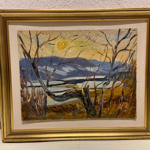 Oljemaleri av O Øie malt ved vinter annet i Bymarka trondheim