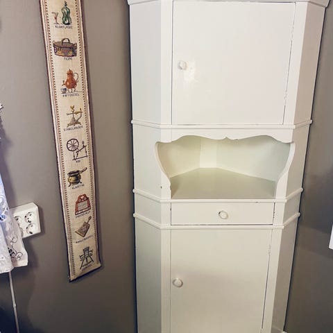 Flott,gammelt skap gis bort. 1 av glassfeltene er knust i skapdøra.