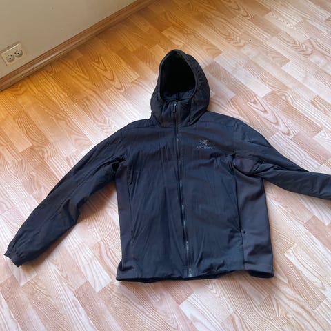 Arc'teryx hettejakke for herre i størrelse M. Jakken er blå og laget i polyester. Den har fast hette med snøring, hel glidelås i front og to frontlommer med glidelås. Egnet som mellomlag eller lett ytterplagg til hverdagsbruk og friluftsaktiviteter.
